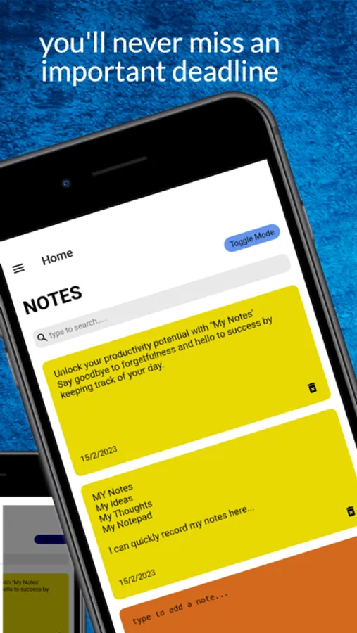 Take advantage of our quick note feature to jot down thoughts and ideas on the go, with our app of quick notes, you'll never miss an important idea or task again.