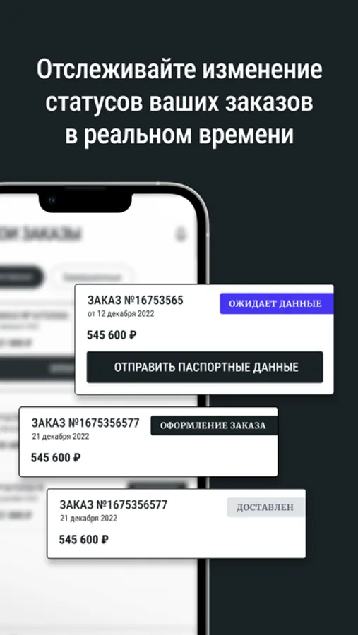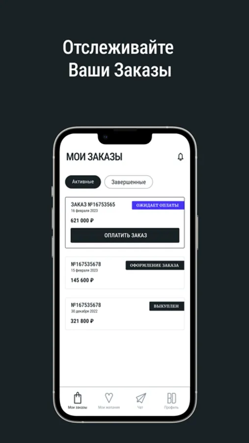 Мы собрали все ваши заказы в одном месте, отслеживайте их статус и получайте пуш уведомления!