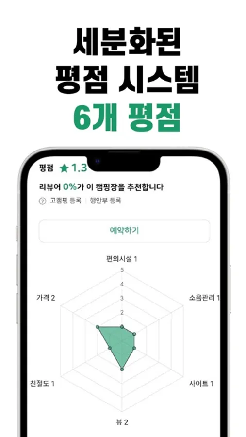 캠퍼들이 중요하게 생각하는 6개 요소별 평점 시스템