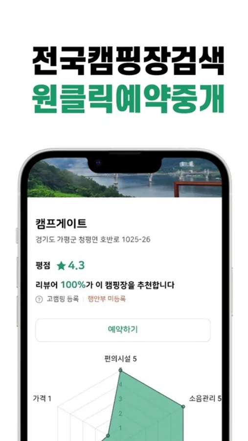 전국캠핑장 검색, 원클릭 예약중개