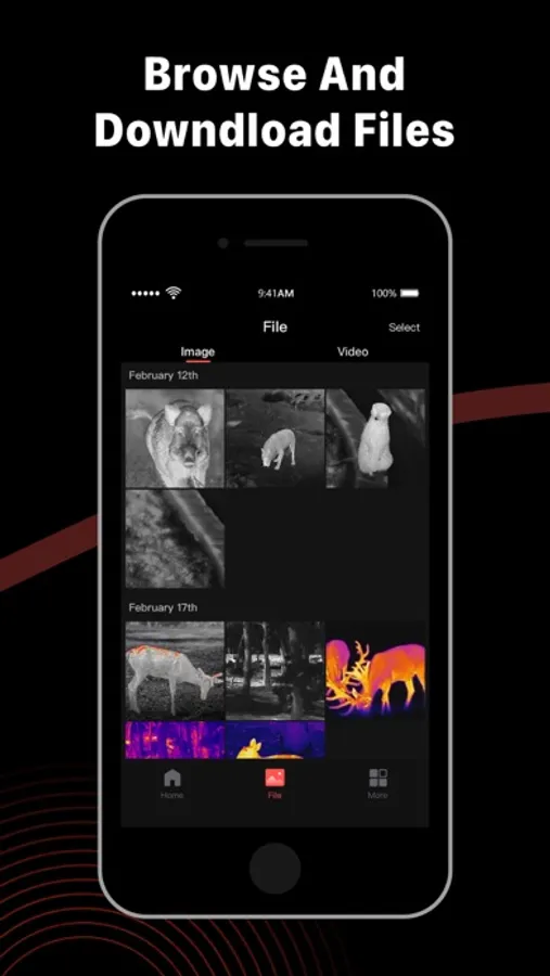 IR Searcher App is a mobile application tool for flexible use in outdoor night vision, police law enforcement, outdoor search and rescue, animal observation, personal safety and many other application scenarios. Through wireless connection with the device, the users can obtain images and videos from the device, realize remote device control and one-click file sharing to social media.