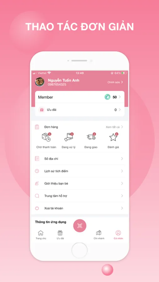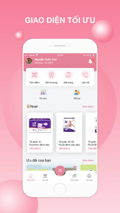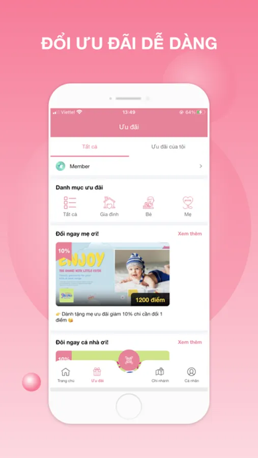 Ứng dụng miễn phí giúp khách hàng tích điểm và nhận những quà tặng hấp dẫn.