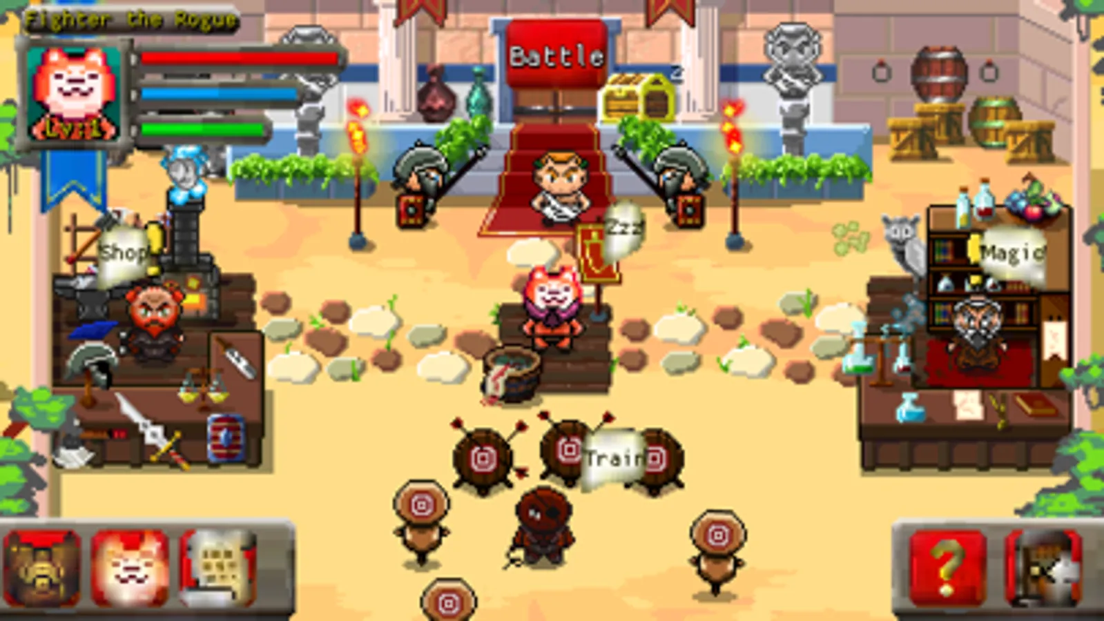 This is a turn based RPG game where you play as a brave shiba fighter who wants to become the champion of the royal arena. You will face different opponents with different skills and abilities, and you will have to use your wits and reflexes to defeat them. You can also customize your fighter with various outfits and accessories, and unlock new moves and power-ups as you progress. This is a game for RPG lovers who enjoy turn based combat and retro style graphics.