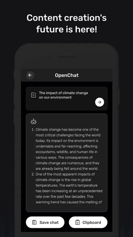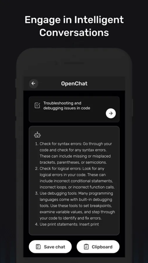OpenChat : AI Chatbot is an AI-powered chatbot app that allows users to communicate with an AI language model in a conversational manner. With its advanced language processing capabilities, AI Chatbot can understand and respond to a wide range of questions and statements on a variety of topics. Whether you're looking for information on a specific subject or just want to have a casual conversation, OpenChat : AI Chatbot is the perfect companion for all your conversational needs. Try it out today and experience the future of AI communication!