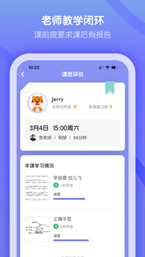 1、海量严选优质教师队伍,来自全国各地的专业音乐院校。经过专业化、统一化的教学培训,确保用户在平台享受到高质量的乐器陪练服务。