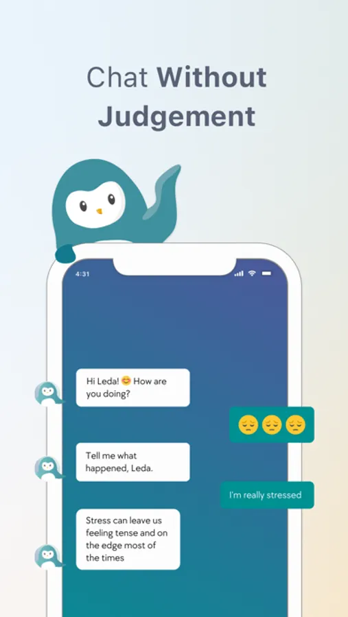 Think of Wysa Assure as an AI friend you can chat with on your terms, whenever you need them. Chat with the cute penguin or scroll through the extensive mindfulness exercises for anxiety relief, depression, and stress management. Its therapy-based techniques and conversations make for a very calming therapeutic chat app, whether you're looking to cope better with mental disorders, to manage stress or to boost your mental health. If you are dealing with stress, anxiety and depression or coping with low self-esteem, then interacting with Wysa Assure can help you relax and get unstuck — it’s empathetic, helpful, and will never judge.