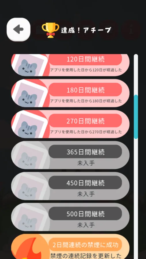 ・「いつから禁煙・減煙しているか」を設定できるので、既に禁煙を始めている人にも利用できます。