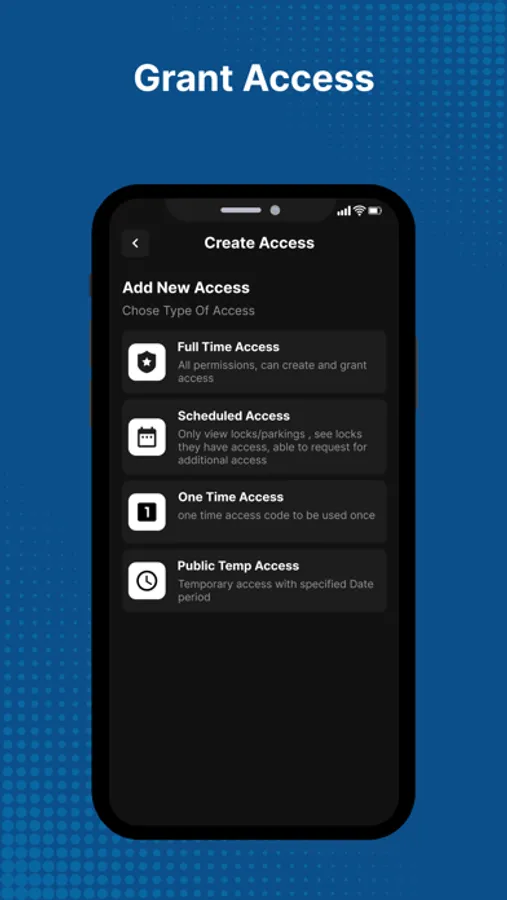 Multi-User Accesses for your Assets or Parking Spaces. Create Scheduled, Full Time, Temporary or One-Time Accesses.