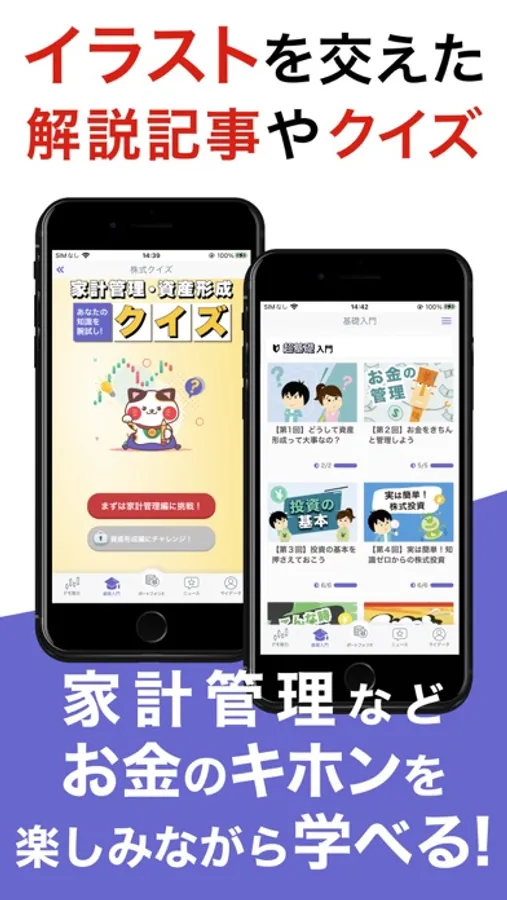 イラストを交えた解説記事やクイズなどで、株式投資をはじめとする、資産形成や家計管理などお金のキホンについて楽しみながら学ぶことができます。