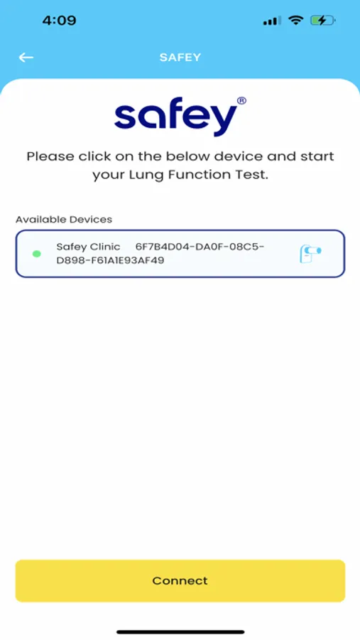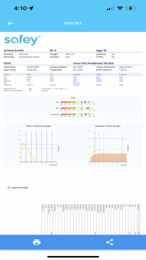 The Safey App communicates with Safey Peak Flow Meter and Safey Pocket Spirometer via Bluetooth. The app is a multi patient use app for Doctors only and depending on the type of device, it will measure following parameters: