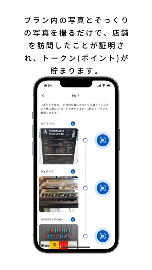 > お店を訪れるだけでトークン(ポイント)がもらえ、購入するとさらにトークン(ポイント)が貯まります。