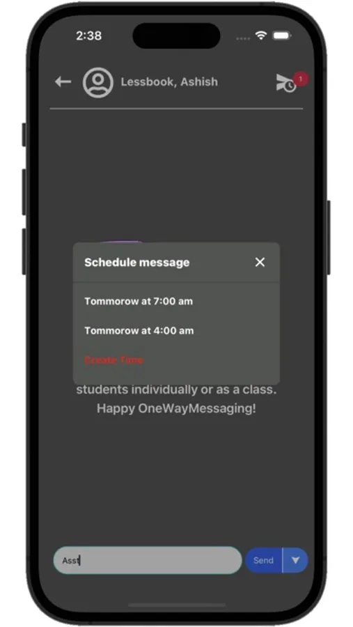 Additionally, 1WayMessaging supports end-to-end encryption, ensuring the privacy of the conversations. The app also provides features like read receipts, typing indicators, and the messages are never deleted to make ensure the protection of the teachers and students, making communication secure, seamless, and friendly for every user.