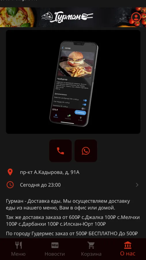 Мы осуществляем доставку блюд на дом и в офис, в Гудермесе