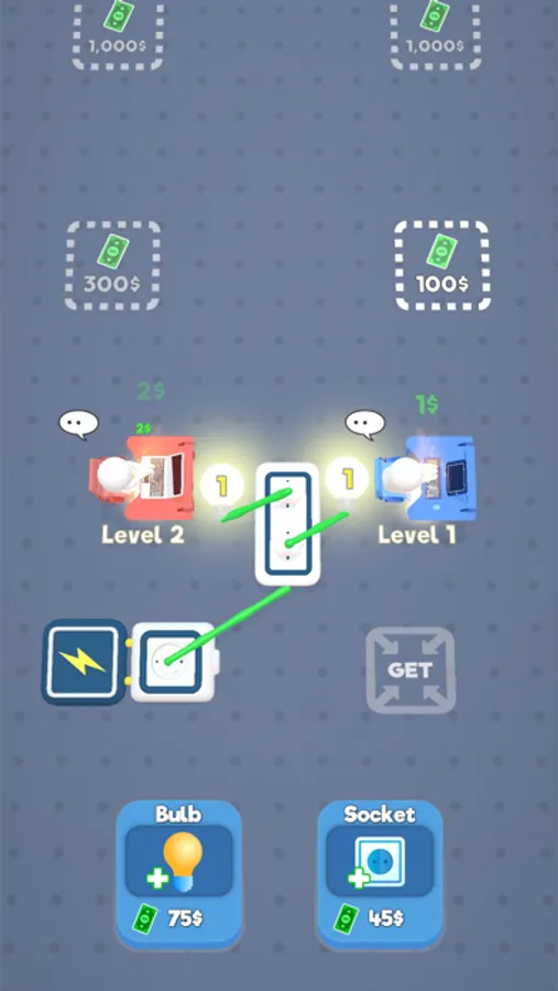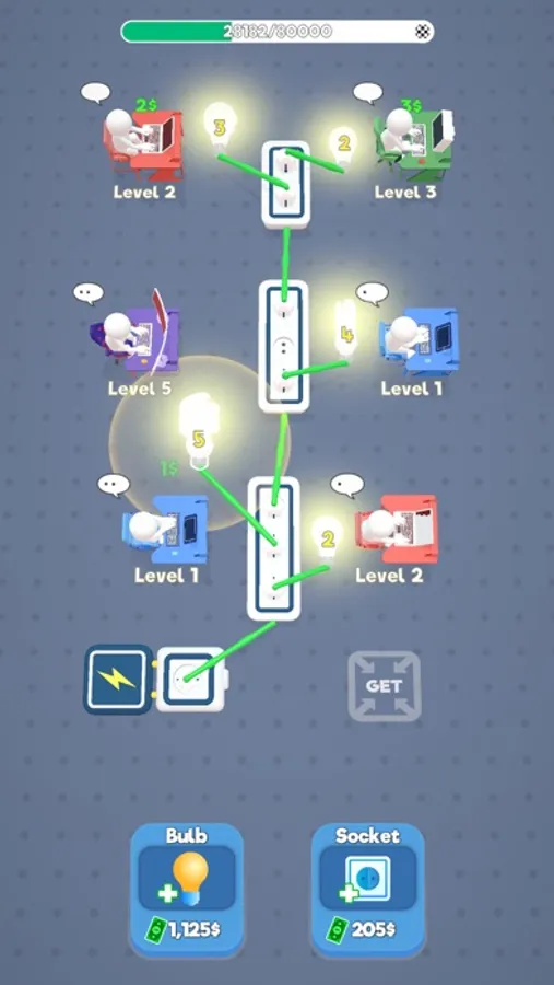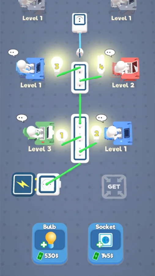 Welcome to "Light Workers", a unique and entertaining mobile game where you'll manage a team of workers in a magical realm. Your goal is to merge bulbs and power outlets to create bigger, brighter lights and larger power supplies, allowing your workers to be more productive. As you progress, you'll uncover new areas to light up and new workers to unlock, leading to endless fun and strategic gameplay. With vibrant graphics and an immersive world, "Light Workers" will keep you coming back for more. Download now and start shining!