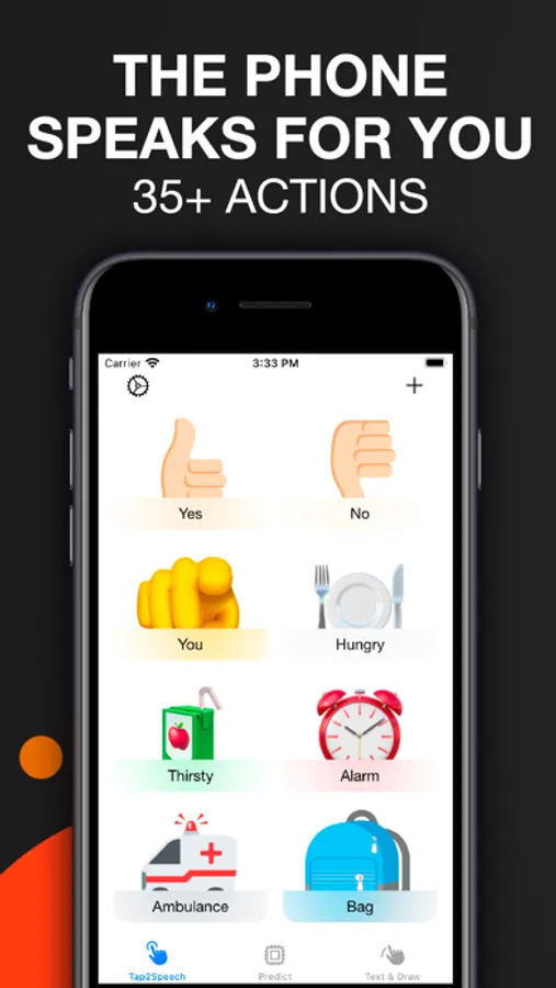 - Visive images with text, by tapping on the image the app will talk. You can also add custom actions and images!