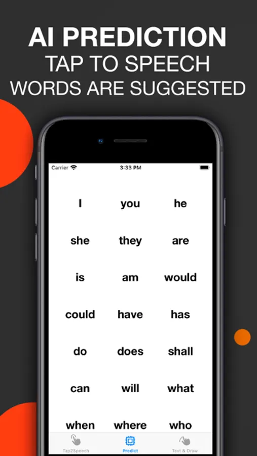 - AI Predictive text: different words are suggested, they can be tapped and consecutive new words will be provided.