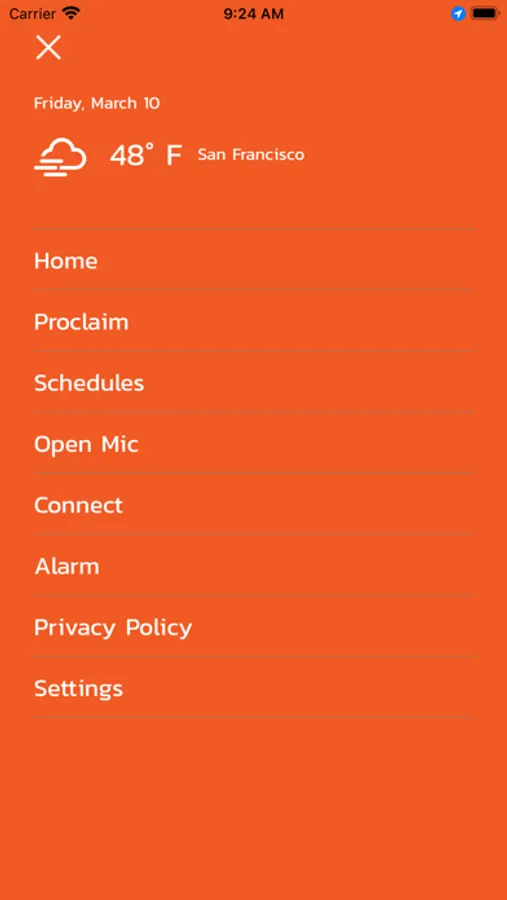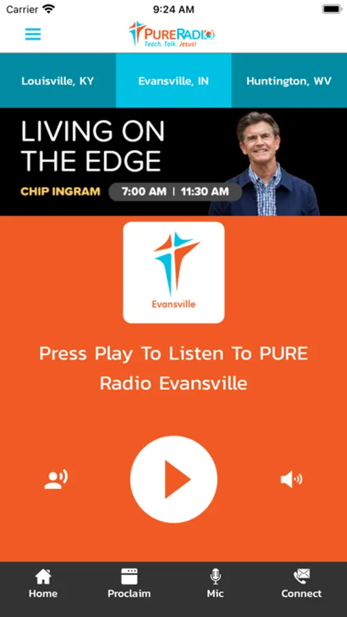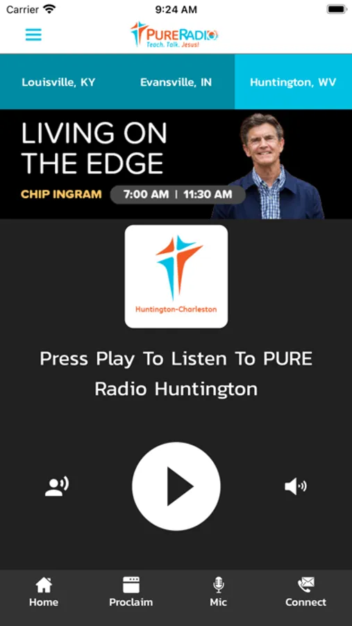A radio station app playing programming and providing services to listening audiences