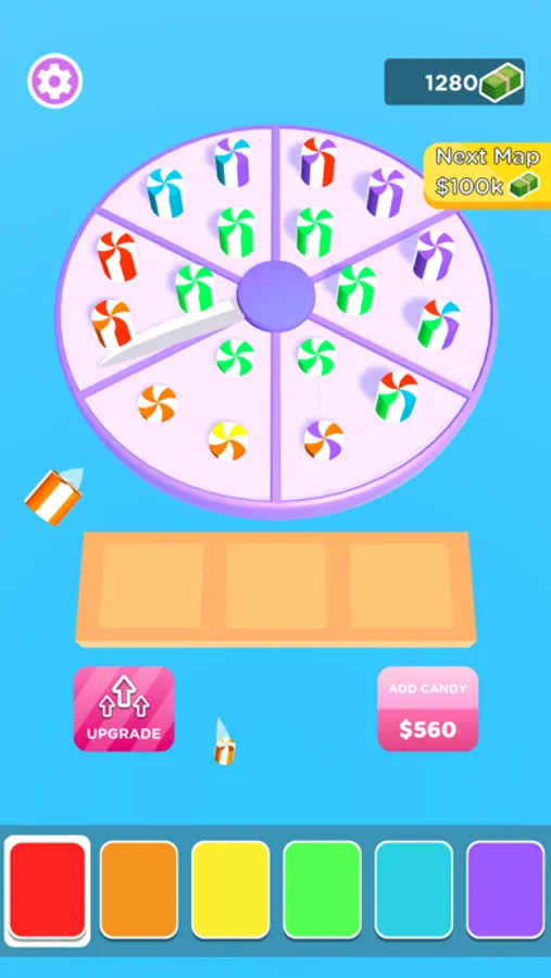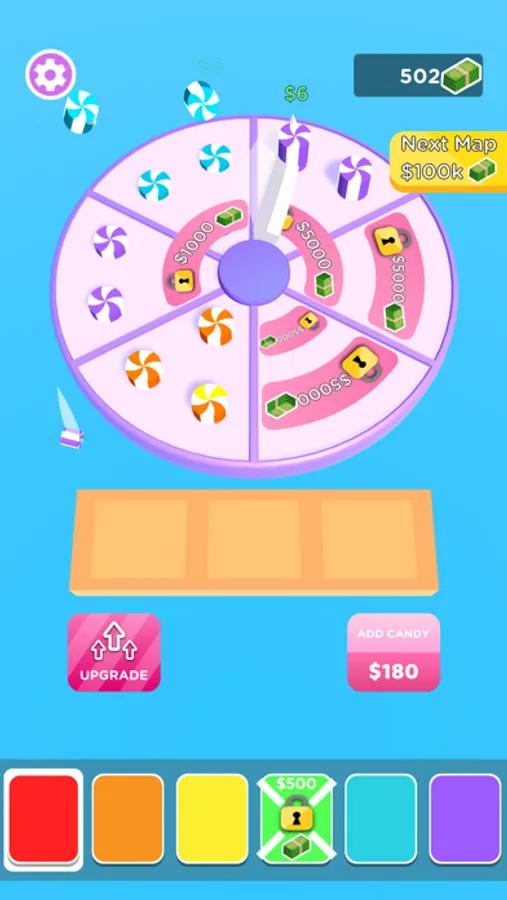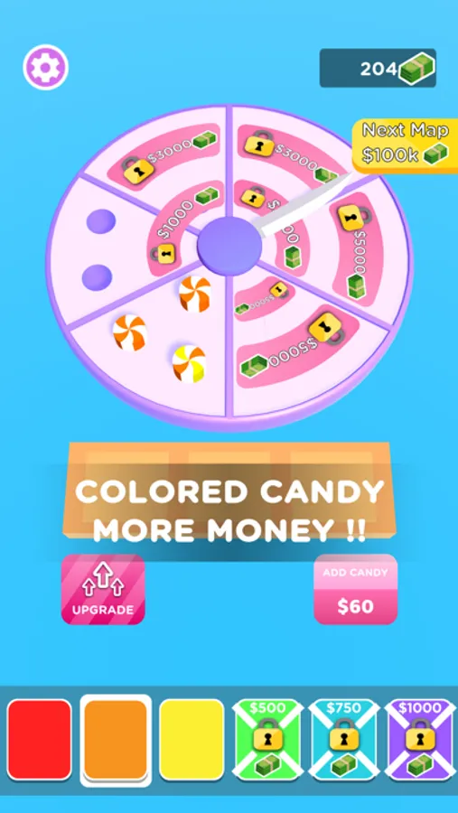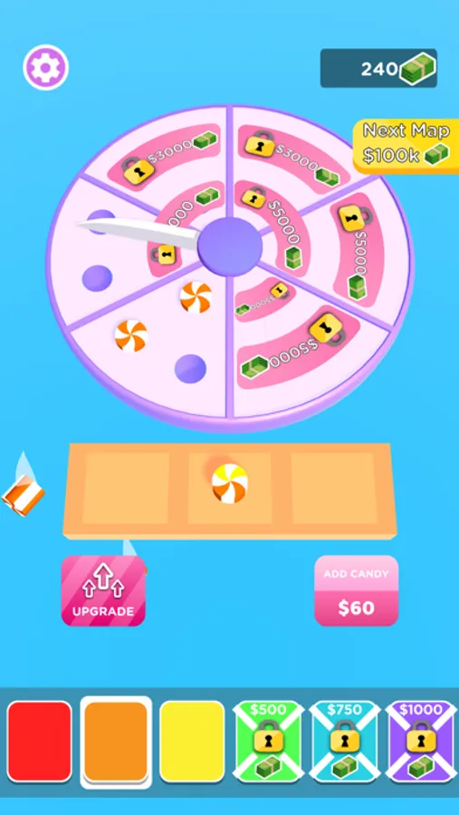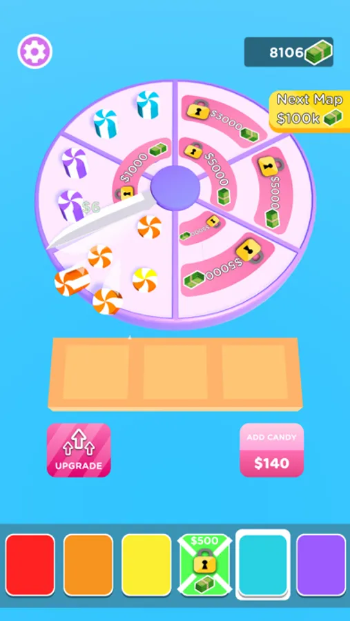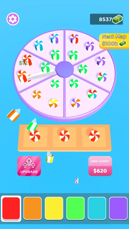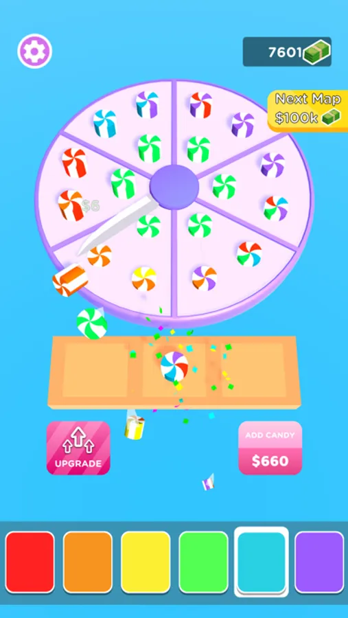 Merge and cut candies to earn more money. You can add multiple colored candy!