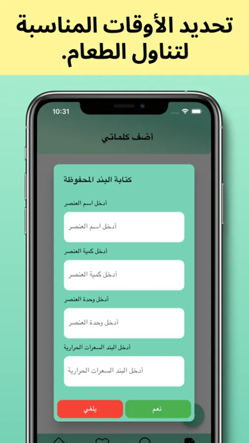 يمكن للمستخدمين إضافة الأطعمة التي يتناولونها يوميًا وتتبع السعرات الحرارية التي يستهلكونها والحفاظ على توازن صحي بين السعرات الحرارية المتناولة والنشاط البدني.