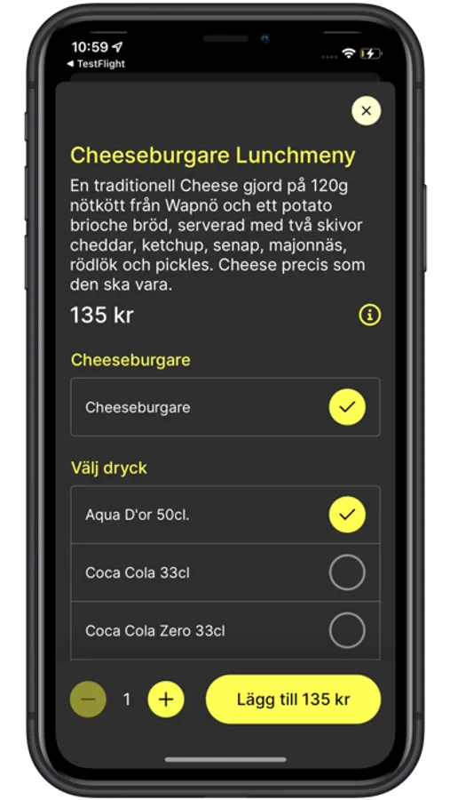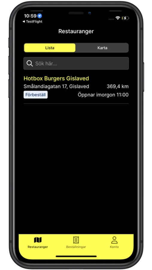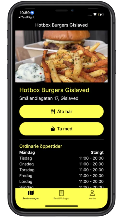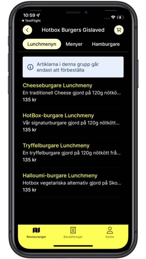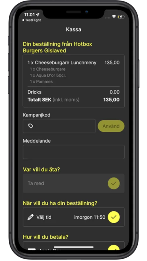 Här kan du beställa mat direkt i appen, snabbt och enkelt.