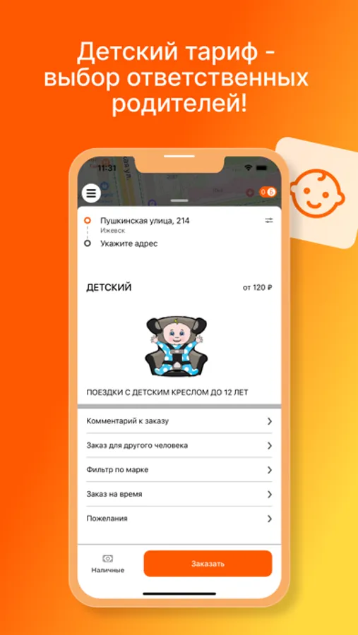 - Заказ авто без звонка диспетчеру. Отметьте точку на карте, не нужно писать длинный адрес вручную;