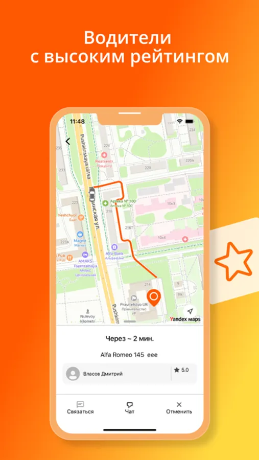 Наблюдайте за приближением авто на экране вашего телефона в режиме реального времени! Пока авто едет к вам, вы будете видеть время прибытия, a также фото и персональный рейтинг водителя.