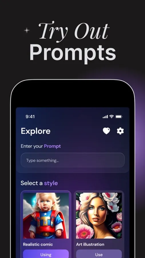 Simply type in a word or phrase and let Artify's cutting-edge AI algorithms do the rest. Our app uses state-of-the-art technology to analyze your input and generate stunning visuals that reflect the essence of your message.