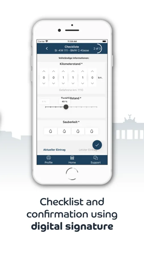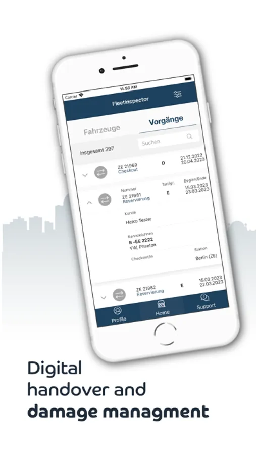 Fleetinspector bietet die Möglichkeit an, der gesamte Check-Out und Check-In Prozess zu digitalisieren. Dafür finden sämtliche Abläufe mit dem KMS Fleetinspector mobil via Tablet direkt am Fahrzeug statt.