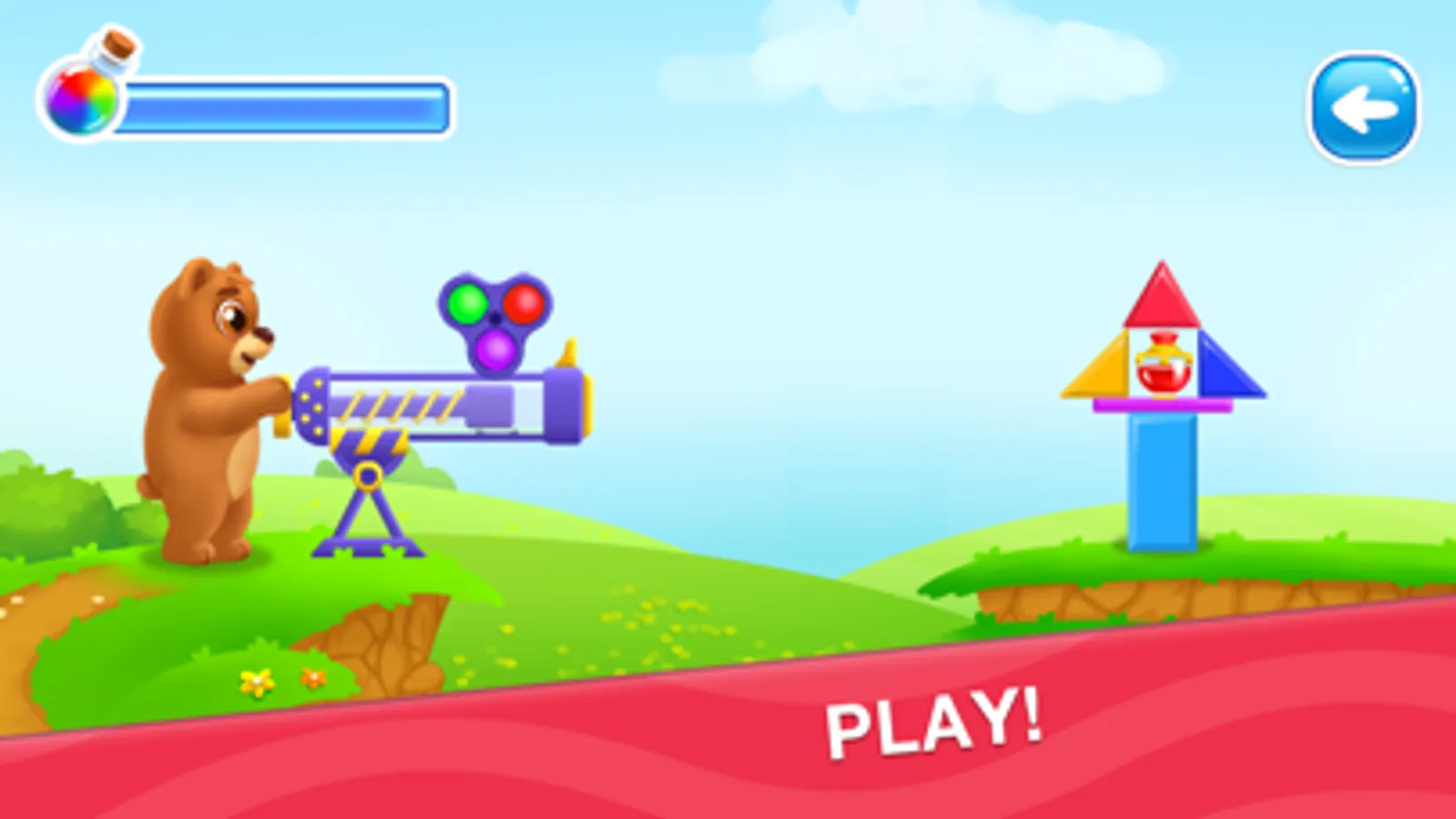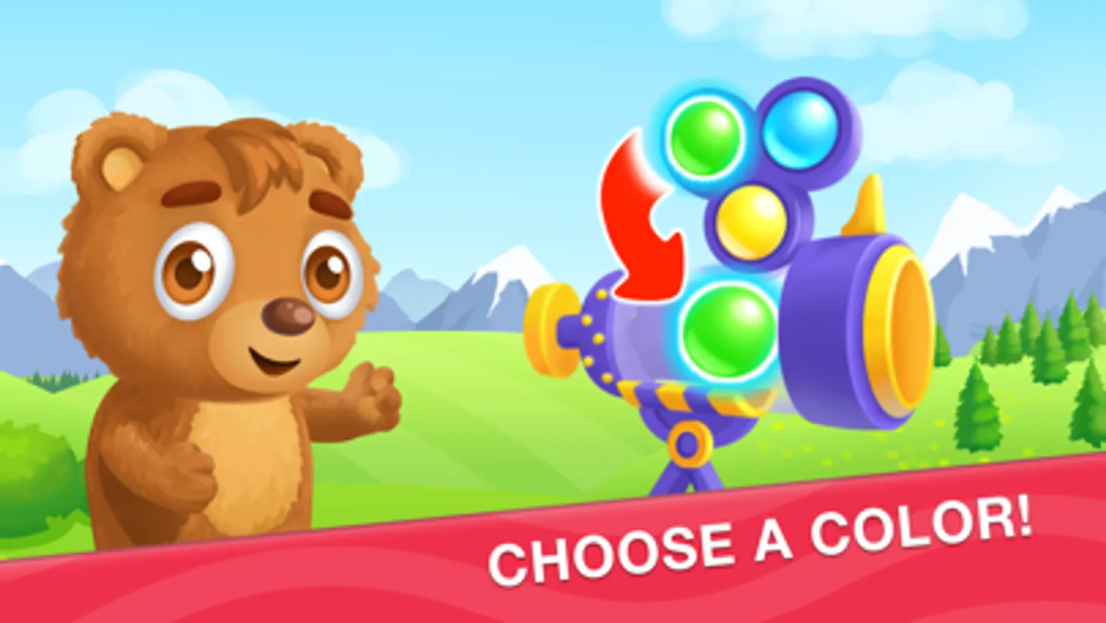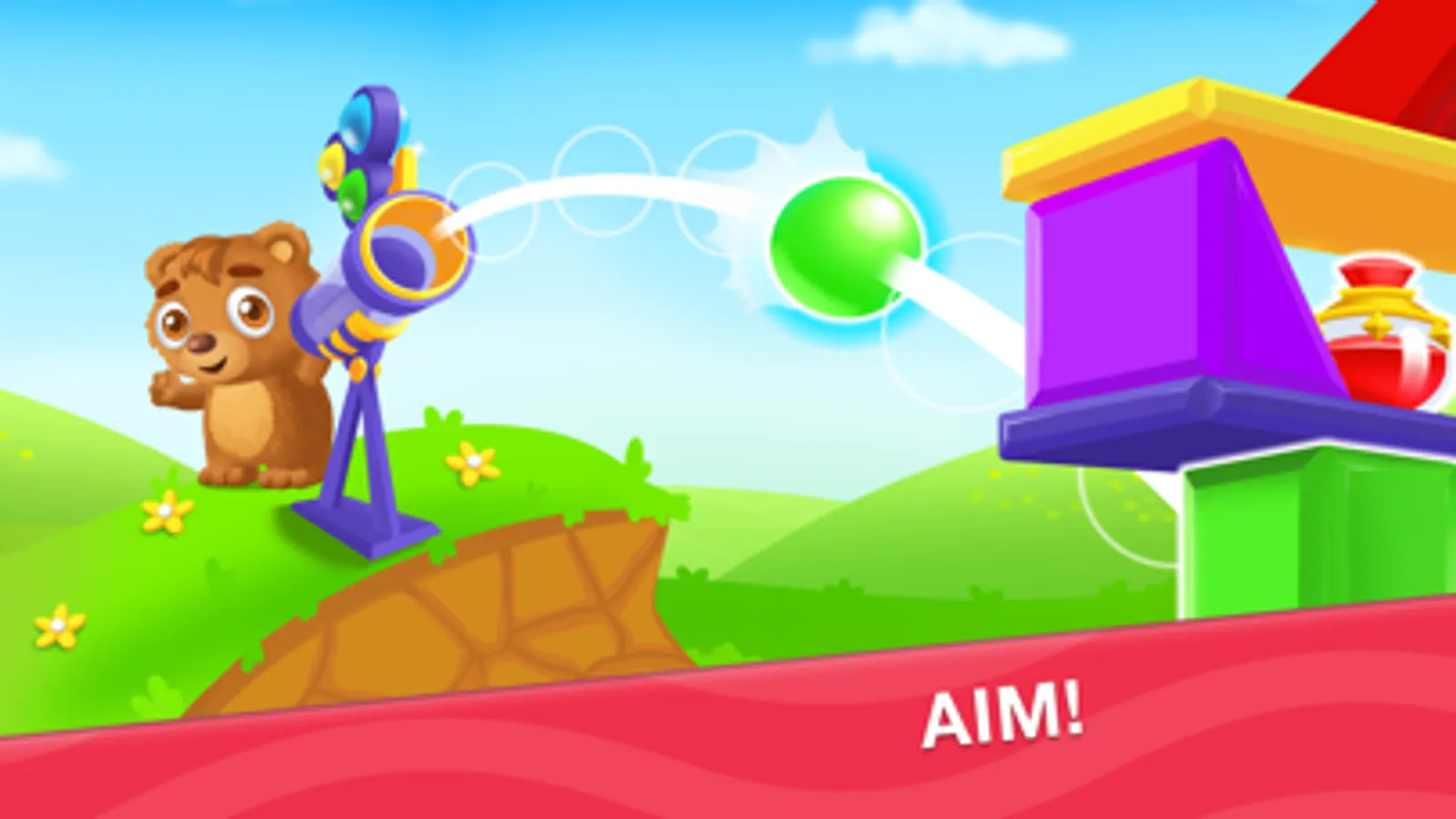 The game combines educational and entertaining elements which help to learn through playing without struggling with a dull education process. Throwing the colorful balls into obstacles trains fine motor skills and coordination of kids. Children will also like the game with funny bear.