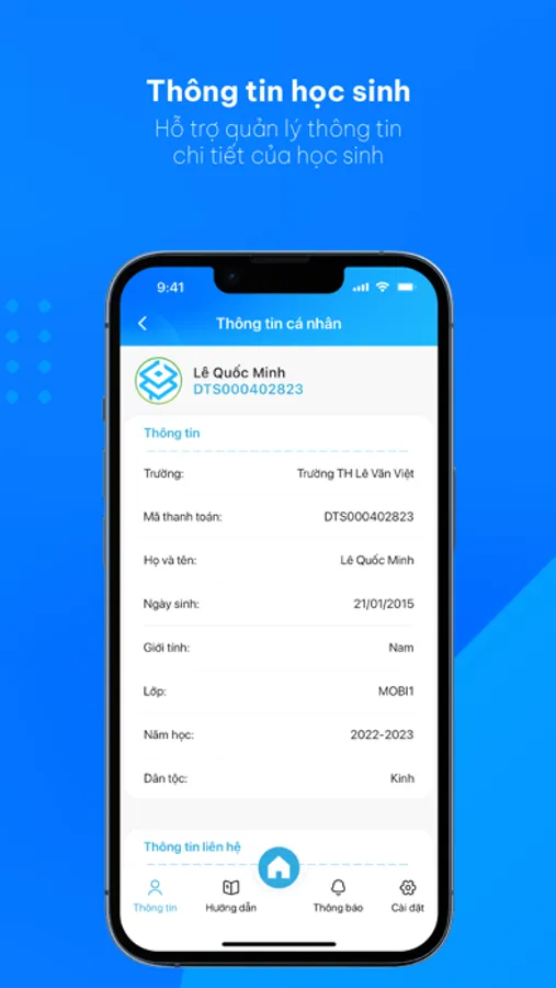 - Thông tin học sinh phụ huynh: Hệ thống cung cấp thông tin về học sinh.