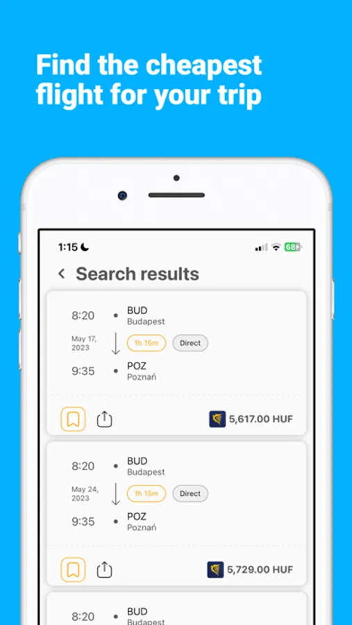 Flights: Choose flights based on your preferences and filters. You can also save and share flights with your friends.