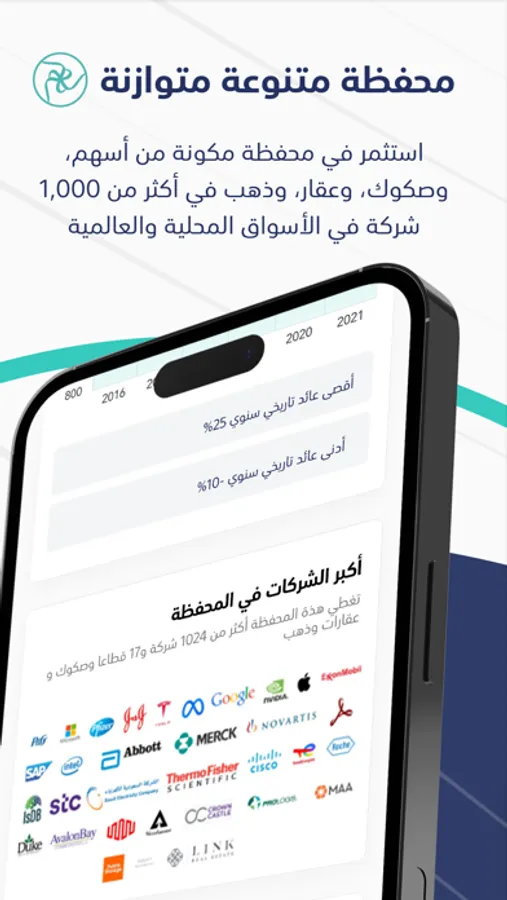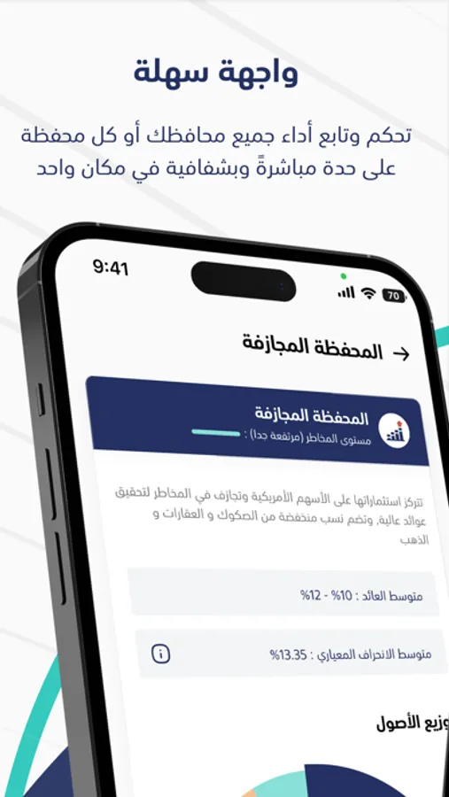 • Balanced and diversified portfolio: Take advantage of the power of diversification by investing in a diversified and balanced portfolio of ETFs covering stocks, sukuks, real estate and gold in more than 1,000 companies in the local and global markets, to help you achieve high returns while minimizing risks