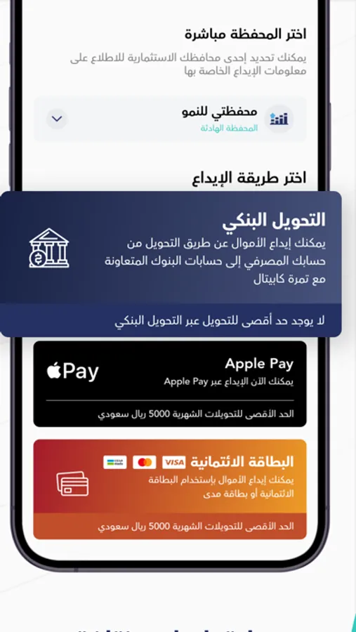 • Multiple deposit options: Start your investment journey by depositing into your portfolio’s wallet in a way that suits you, with the different payment channels available in our application