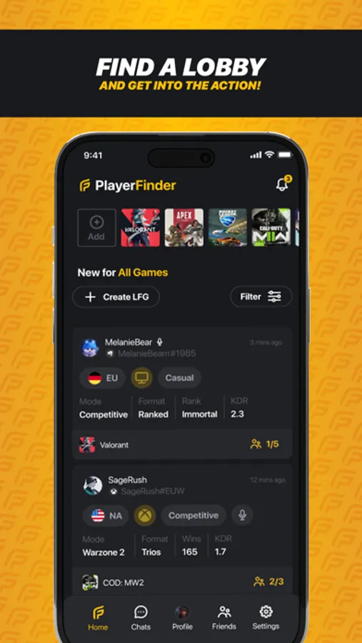 PlayerFinder is designed to help you quickly filter LFGs based on game, format, skill, and other critical player-matching criteria. With just a few taps, you can find the perfect group to join and start playing your favorite games quickly. Whether you're into first-person shooters, strategy games, or sports simulations, PlayerFinder has you covered.