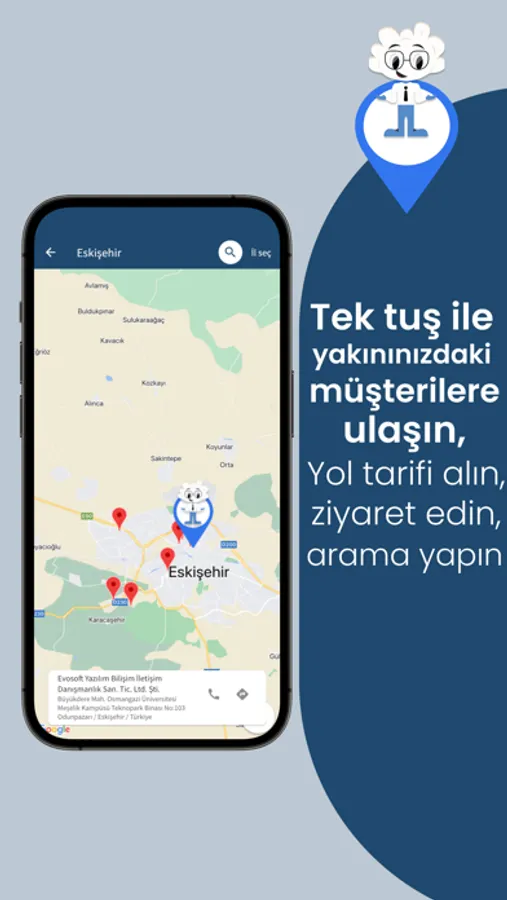 - Müşterilerinizin haritadaki konumunu görerek ziyaret planlarınızı oluşturabilirsiniz.