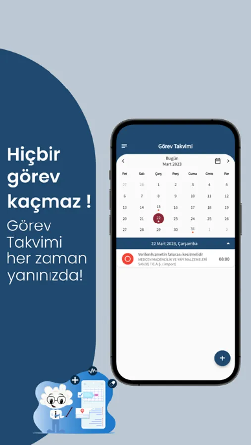 - Görev ataması yaparak müşterilerinizle ilgili önemli tarihleri ve yapılacak işlerinizi takviminizden takip edebilirsiniz.