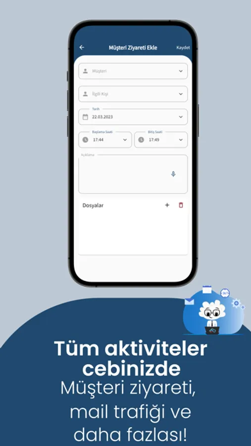 - Müşteri ziyareti, mail, arama vb. gibi aktivitelerinizi hızlı ve kolay bir şekilde yapabilirsiniz.