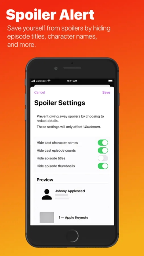 • Prevent spoilers when watching TV shows by optionally hiding character names, episode counts, episode titles, or episode thumbnails.