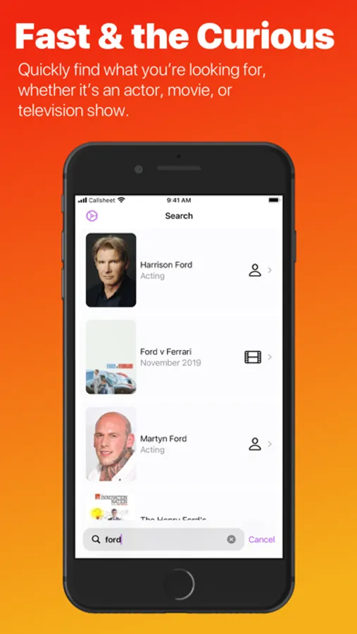 Callsheet is the best way to quickly look up information about the cast and crew in TV and movies. It respects your time, doesn't try to sell you stuff you don't need, and is designed to answer your questions quickly and easily.