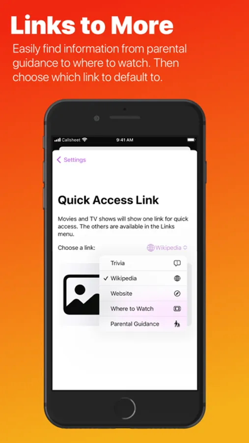• Quick access to trivia, Wikipedia, parental guidance, and where to watch (provided by JustWatch).