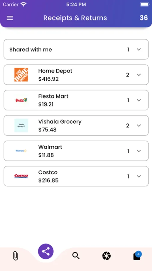 • Share receipts with partner/family for easy Receipts or Returns management.