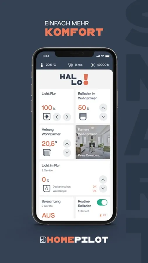 The basis for the HOMEPILOT Smart Home is our radio system, which is based on over ten years of experience and is one hundred percent Made in Germany. Doubly safe: All device information, data and routines are stored locally on the device, so you can operate your Smart Home at any time even without an Internet connection. Thanks to regular updates, the HOMEPILOT app is absolutely future-proof and new functions are constantly being added. So you can be sure that your Smart Home will still be a perfect fit for your life years from now.