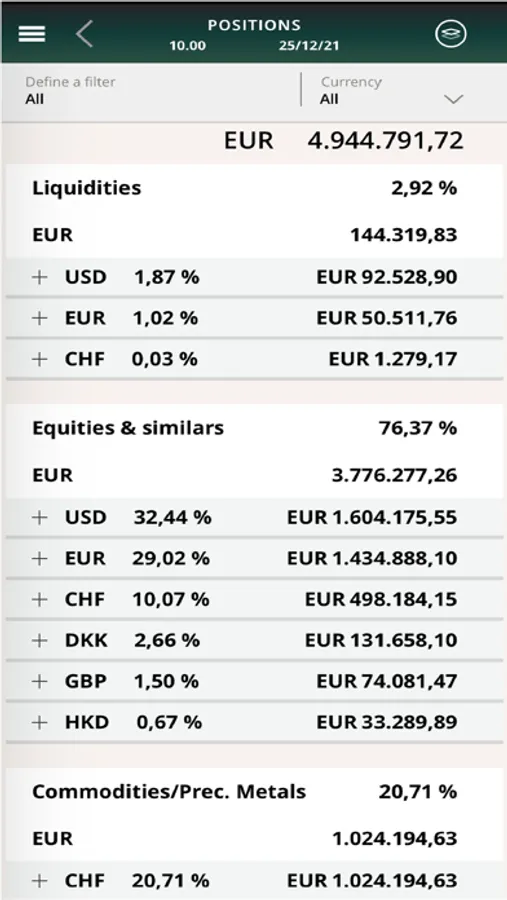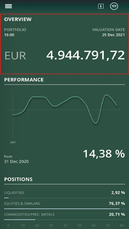 - Get a more detailed overview of your wealth (asset allocation, position details, performance, and movements)