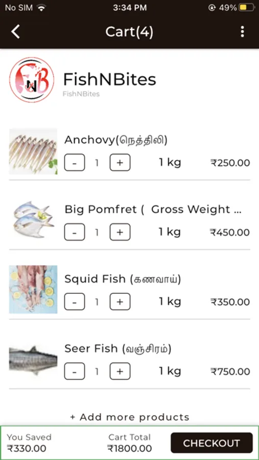 Welcome to the FishNBites app, your one-stop destination for fresh and high-quality seafood straight from the waters of Chennai! Our app is designed to provide you with a hassle-free shopping experience, so you can order your favorite seafood from the comfort of your own home or workplace. Here are some of the features you can expect from our app: Extensive range of products: We offer a wide range of seafood products such as fish, prawns, crabs, lobsters, and more, all sourced from local fishermen in Chennai. Real-time updates: We update our inventory in real-time so you can be assured of the availability of your favourite seafood. Easy to use interface: Our user-friendly interface allows you to navigate the app and place your orders with ease. Convenient payment options: We offer multiple payment options including cash on delivery, credit/debit cards, and mobile wallets. Secure transactions: We ensure that all transactions made through our app are secure and encrypted to protect your personal and financial information. Delivery at your doorstep: We offer doorstep delivery of your order in Chennai and surrounding areas, so you don't have to worry about the hassle of travelling to the market. Customer support: Our dedicated customer support team is always ready to assist you with any queries or concerns you may have.