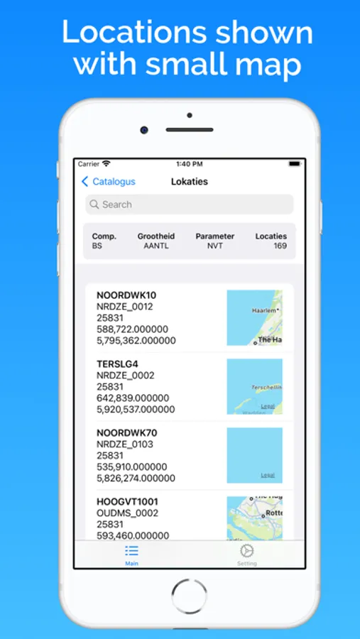 - Catalogue View: The catalogue information is pulled from rijkswaterstaat.nl and the list is presented so the user can select the specific data to present the measurement information on. After selection of a catalogue item a list of locations is presented that apply for this specific information item;