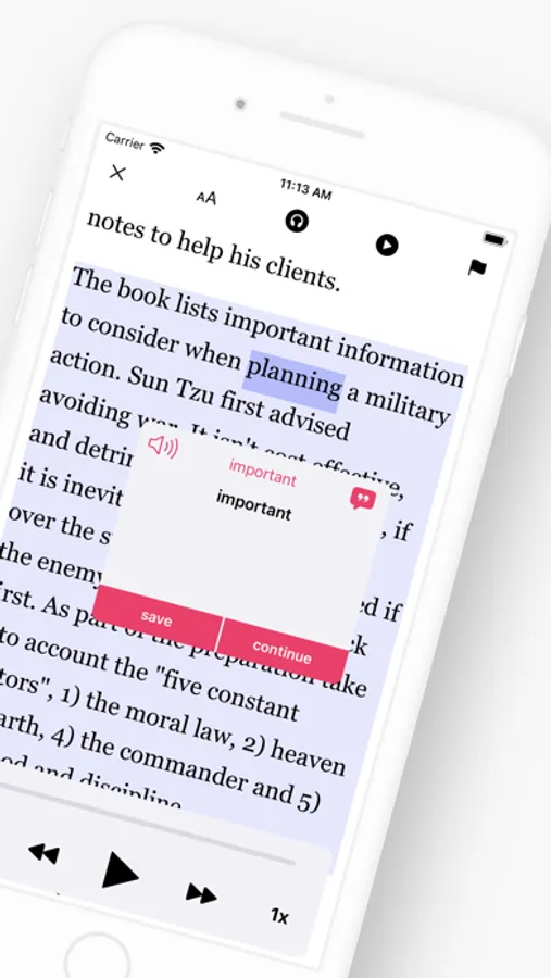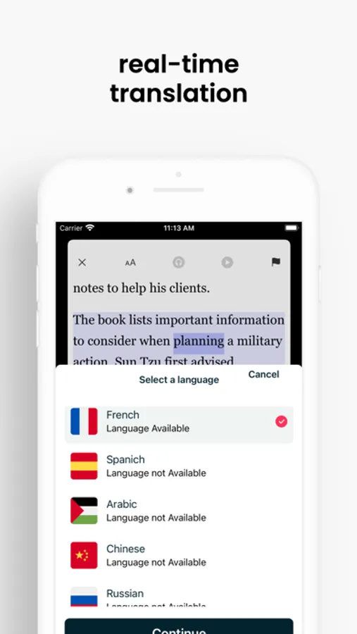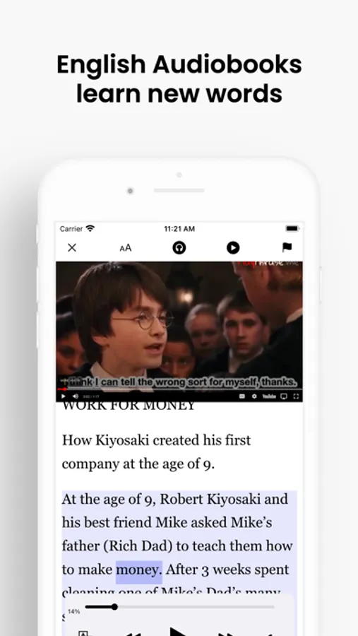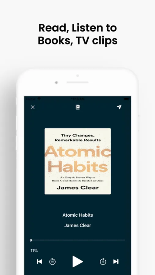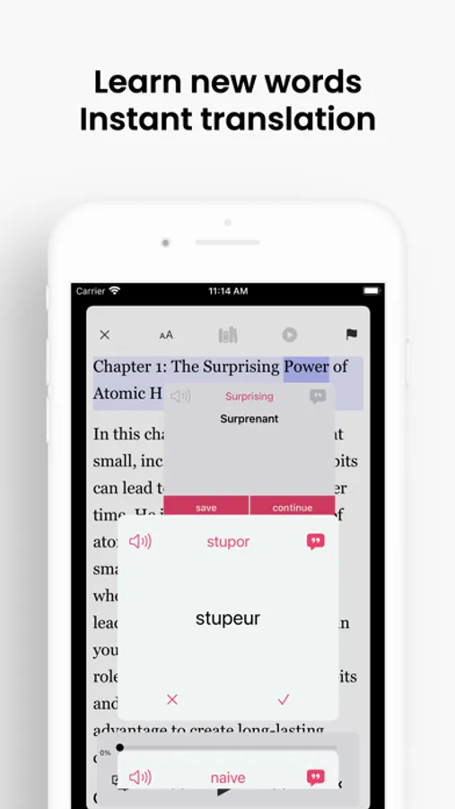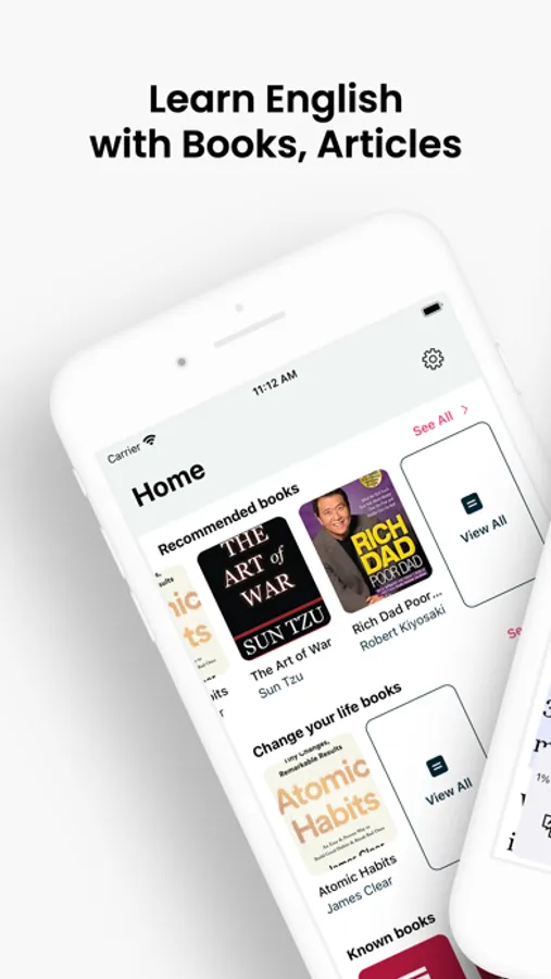 ● Glish also offers a wide range of materials for you to practice with. You can choose from a selection of books, articles, and courses with real-time translations to help you understand new words and concepts. The app even has a feature where you can tap on an unknown word to get a translation and add it to your list of words to learn.
