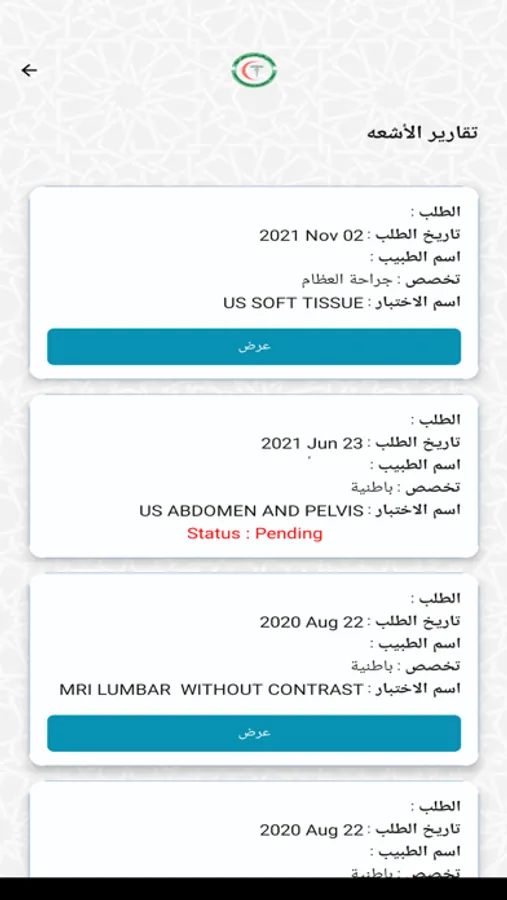 • Access to your medical file and review the results and reports of your radiology and laboratory with download facility.