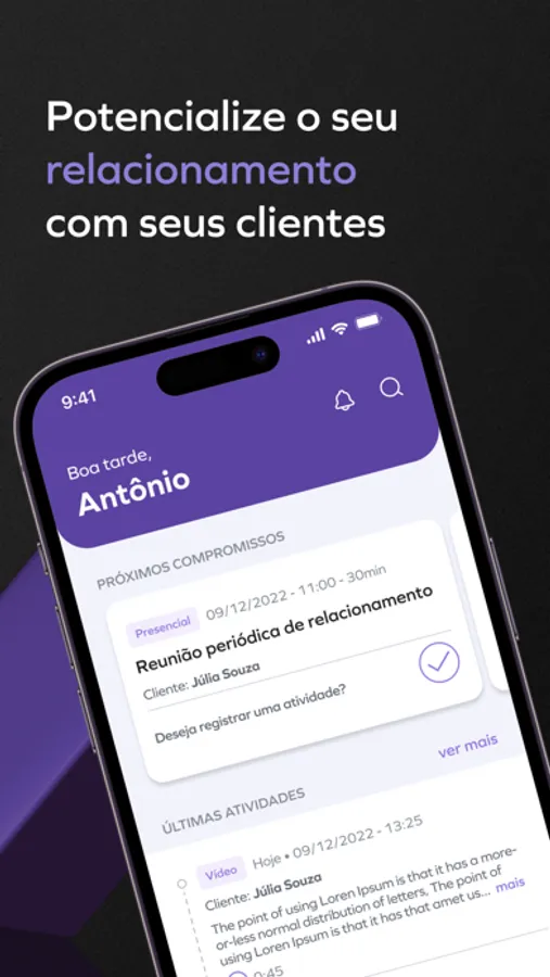 Baixando o aplicativo, você conseguirá agendar reuniões, marcar compromissos, receber notificações, realizar ligações e registrar atividades realizadas.