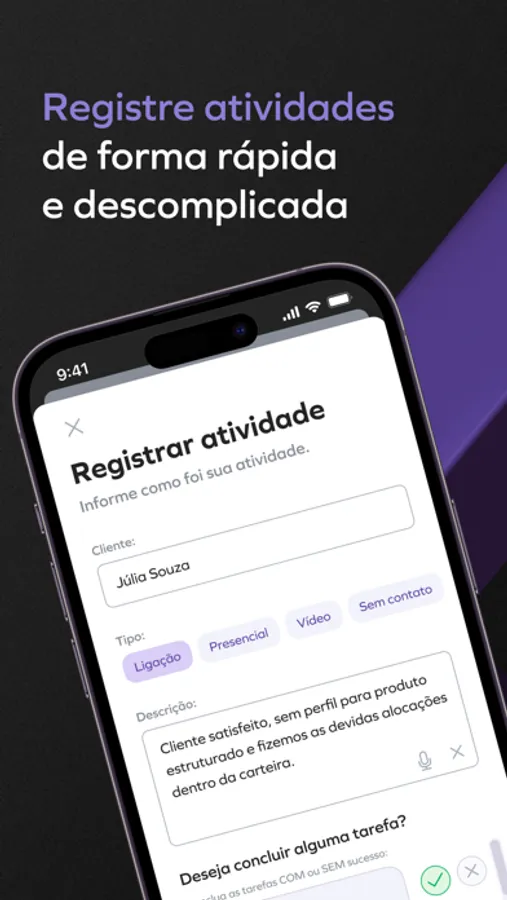 Desenvolvido para facilitar a jornada dos nossos assessores de investimentos, o CRM Mobile oferece as ferramentas necessárias para executar suas tarefas do dia a dia, de maneira rápida e eficiente.
