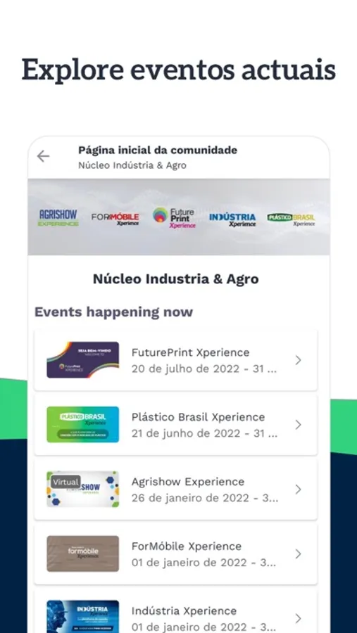 Use o aplicativo para criar sua agenda e receber notificações personalizadas sobre os próximos conteúdos, interagir com outros participantes, ampliar seu networking e alcance.